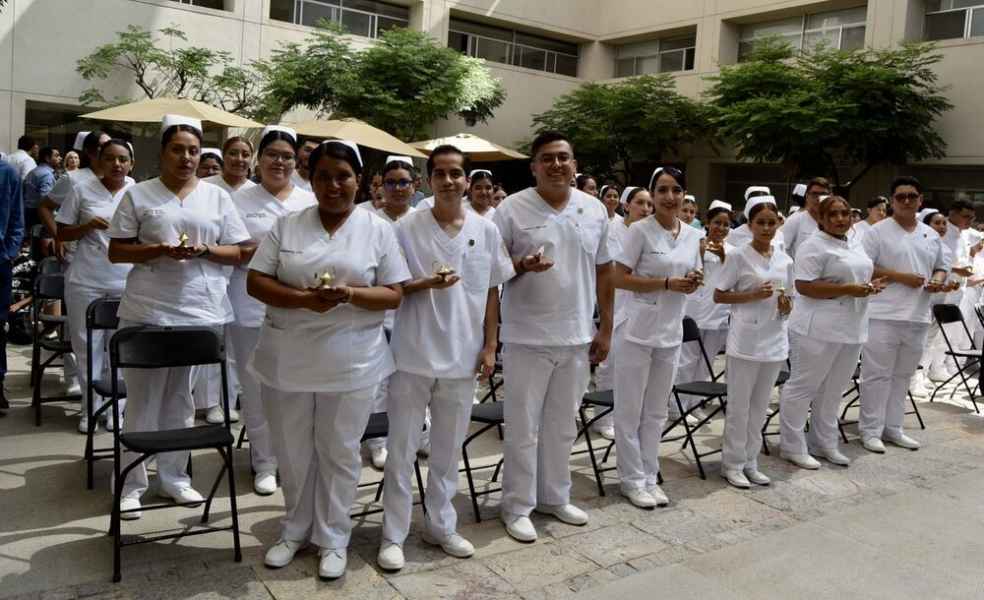 En el patio central de la División de Ciencias de la Vida de la Universidad de Guanajuato (UG) las profesoras y profesores comenzaron por colocar las cofias a las nuevas enfermeras, que representan el espíritu de servicio y vocación por convertirse en un profesional de la salud. A los enfermeros les colocaron fistoles de solapa como un distintivo a portar con orgullo en ocasiones solemnes.