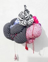 Al principio tuvo dificultades para manejar el textil, pues sus profesores y profesoras no la alentaban a trabajar con tela porque no era un material catalogado para la escultura, ni existían las referencias que hoy ya circulan en el campo artístico. Sin embargo, siguió adelante y desde entonces trabaja con esta herramienta.