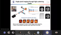 El Dr. Rubén Ramos García, del Instituto Nacional de Astrofísica, Óptica y Electrónica (INAOE) habló de "Biofotónica: una luz en la salud". Describió algunas interacciones luz-material biológico y sus consecuencias, así como una perspectiva de la biofotónica en el sector salud, además de algunas actividades de investigación en pinzas ópticas, inyecciones sin agujas, terapia fotodinámica e imagenología speckle o imagenologia cardiovascular con láser.
