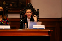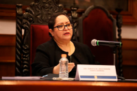 Por su parte, la Dra. Teresita de Jesús Rendón Huerta Barrera, Rectora del Campus Guanajuato, habló de los "Antecedentes de la Investigación Jurídica en Guanajuato". Aclaró que un país que no genera progreso siempre tendrá que estar pagando a los países que sí lo hacen.