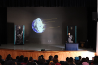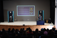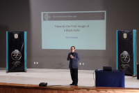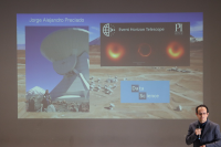 Este conocimiento lo impartió en la conferencia titulada: "Haciendo Visible lo invisible: el camino hacia la primera imagen de un agujero negro" en el Aula Magna de la Escuela de Nivel Medio Superior (ENMS) de Salamanca, que también fue transmitida a través de las redes del Colegio del Nivel Medio Superior (CNMS).