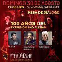 Cabe mencionar que el fundador de Aurora participará en la Mesa de Dialogo "100 años de expresionismo Alemán" dentro del Festival Macabro el 30 de agosto a las 17:00 horas a través de la plataforma www.macabro.mx