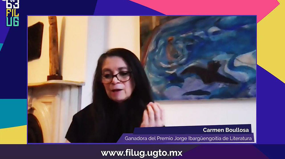 "Como autora de 18 novelas traducidas a distintas lenguas, pensamos que Carmen Boullosa es una de las novelistas más completas, creativas y versátiles del país". Ha dejado pocos temas por tratar y ha renovado el género de manera consistente y continua, dijo la Dra. Inés Ferrero Cándenas, académica de la UG, quien compartió los elementos que llevaron al jurado a su dictamen.