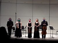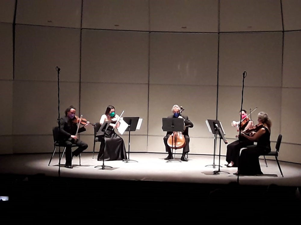 La presentación tuvo lugar en el Teatro Principal donde los violines de Pedro Zayas, Yessica Melgar, las violas de Lydia Bunn, Djamilia Rovinskaia y el Cello de Mikhail Rovinski, en los diversos movimientos musicales deleitaban al público.