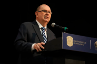 La lectura del Laudatio estuvo a cargo de quien fuera estudiante de la primera generación de la Licenciatura en Cultura y Arte, el Lic. Enrique Torres Gutiérrez, ahora profesor de Departamento de Estudios Culturales de la División de Ciencias Sociales y Humanidades del Campus León, quien definió al doctor Luis Fernando como un formador y creador de nuevas generaciones.