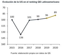En la edición 2020, la Universidad de Guanajuato ocupa la posición 89, lo que representa una mejora relativa y significativa de 7 lugares respecto al ranking del 2019, donde obtuvo la posición 96, lo que la coloca por tercer año consecutivo entre las 100 mejores universidades de América Latina y por cuarto año consecutivo con una mejora en su posición respecto al año previo.