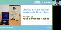 En la ceremonia virtual de premiación, al final del evento llamado ASME E - FEST CAREERS, directivos de la asociación presentaron a quienes ganaron en las distintas categorías y al estudiante UG distinguido con la medalla de plata Charles T. Main Student Leadership Award.