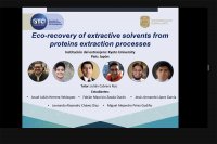 El proyecto "Eco-recovery of extractive solvents from proteins extraction processes" ganador en la categoría de "Energías limpias y sustentabilidad", fuedesarrollado por estudiantes de la Licenciatura en Ingeniería Química: Josué Julián Herrera Velázquez, Fabián Mauricio Zavala Durán, Jesús Armando López García, Leonardo Alejandro Chávez Díaz y Miguel Alejandro Pérez Gudiño, quienes tuvieron como tutor al Dr. Julián Cabrera Ruiz, profesor del Departamento de Ingeniería en Química de la Universidad de Guanajuato (UG).