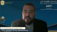 En nombre de la comunidad docente, el Dr. Carlos Alberto Núñez Colín, profesor del Departamento de Ingeniería Agroindustrial, reconoció el avance que se alcanzó en el 2021, dentro de una pandemia que restringió las actividades presenciales casi en su totalidad, sin embargo, la impartición de clases, reuniones de grupos colegiados y tutorías no se detuvieron, adaptándose a la virtualidad.