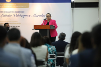 Guanajuato, Gto., a 26 de abril de 2022.- Derivado del continuo trabajo de la Mtra. Velázquez Morales en beneficio de la sociedad y de su comunidad universitaria, se llevó a cabo en la Universidad de Guanajuato (UG) la Nominación de "Claustro Académico Maestra Martha Leticia Velázquez Morales".