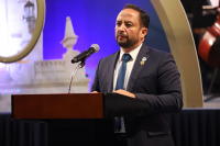 En la sesión pública y solemne, el Mtro. Jorge Enrique Hernández Meza, Secretario de Educación de Guanajuato, en representación del Gobernador del Estado, expresó su entusiasmo por ser partícipe de un acto emblemático e histórico para la Casa de Estudios, al resaltar los impactos que, a lo largo de 290 años en el tiempo, la memoria y la conciencia se han representado en la sociedad guanajuatense, por ello refrendó desde Gobierno del Estado la disposición para sumarse a los retos para que la UG siga trascendiendo.