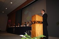 Por su parte, el Dr. Agustín Ramón Uribe Ramírez, Director de la División de Ciencias Naturales y Exactas, le recordó a la comunidad de egresados que en sus manos se deposita el prestigio y los valores de la Universidad de Guanajuato, les exhortó a siempre conducirse con responsabilidad y respeto, ejerciendo la libertad en todas sus manifestaciones y haciendo de este mundo un lugar más justo.