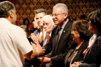 Tanto la Rectora del Campus Guanajuato, Dra. Teresita de Jesús Rendón Huerta Barrera, como el Dr. Raúl Arias Lovillo, Secretario Académico de la Universidad de Guanajuato en representación del Rector General, Dr. Luis Felipe Guerrero Agripino, encabezaron este encuentro organizado para homenajear a las y los 57 Juglares, seis de ellos ya finados.