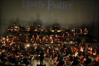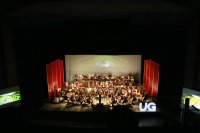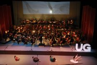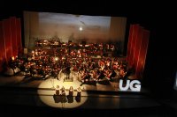 En este cine-concierto la orquesta universitaria interpretó la banda sonora de obras fundamentales en la historia del cine, con una pantalla de fondo en donde se proyectaban las escenas correspondientes a las piezas que se escuchaban.