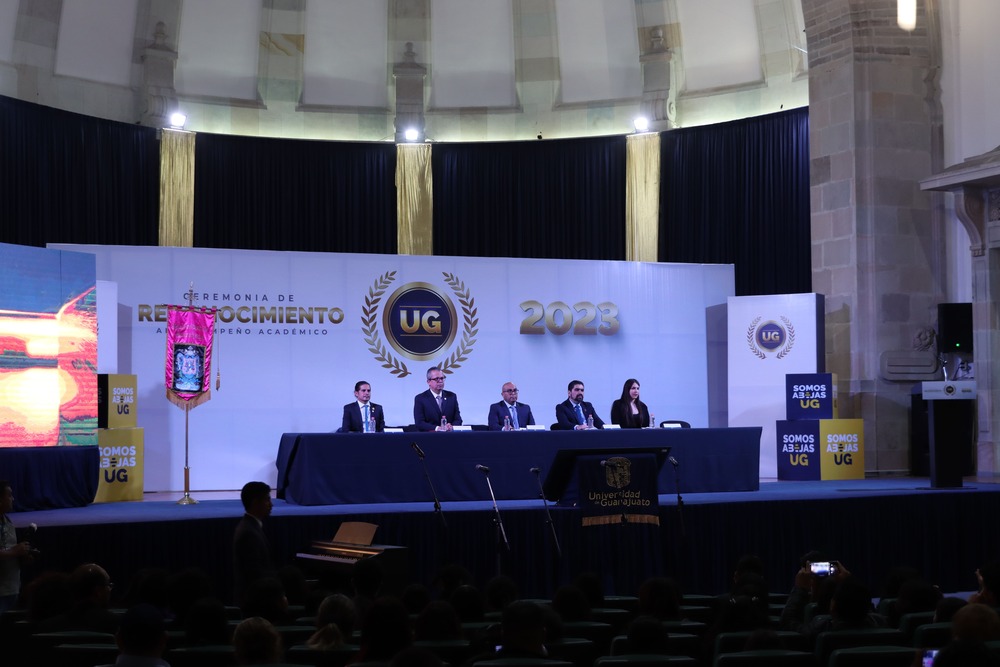 Guanajuato, Gto., a 29 de noviembre de 2023.- Con el objetivo de celebrar los logros de la comunidad estudiantil del Colegio del Nivel Medio Superior (CNMS), se realizó una ceremonia para reconocer a 49 estudiantes de las diferentes Escuelas del Nivel Medio Superior que destacaron por su excelencia académica.