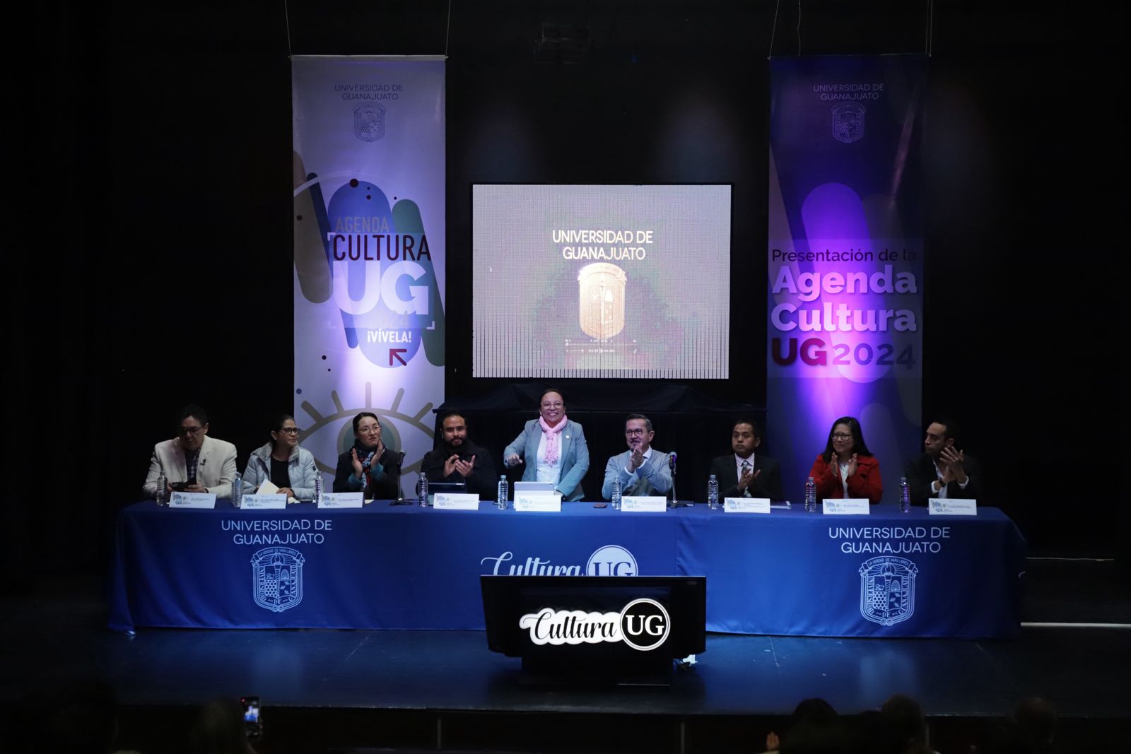 Guanajuato, Gto., a 31 de enero de 2024.- Con la intención de llevar las actividades académicas, espectáculos y cursos de educación continua más allá de las aulas universitarias, la Dirección de Extensión Cultural de la Universidad de Guanajuato (DEC – UG) realizó la presentación de la Agenda Cultura UG 2024 en las instalaciones del auditorio de la Escuela de Nivel Medio Superior de Irapuato (ENMS).