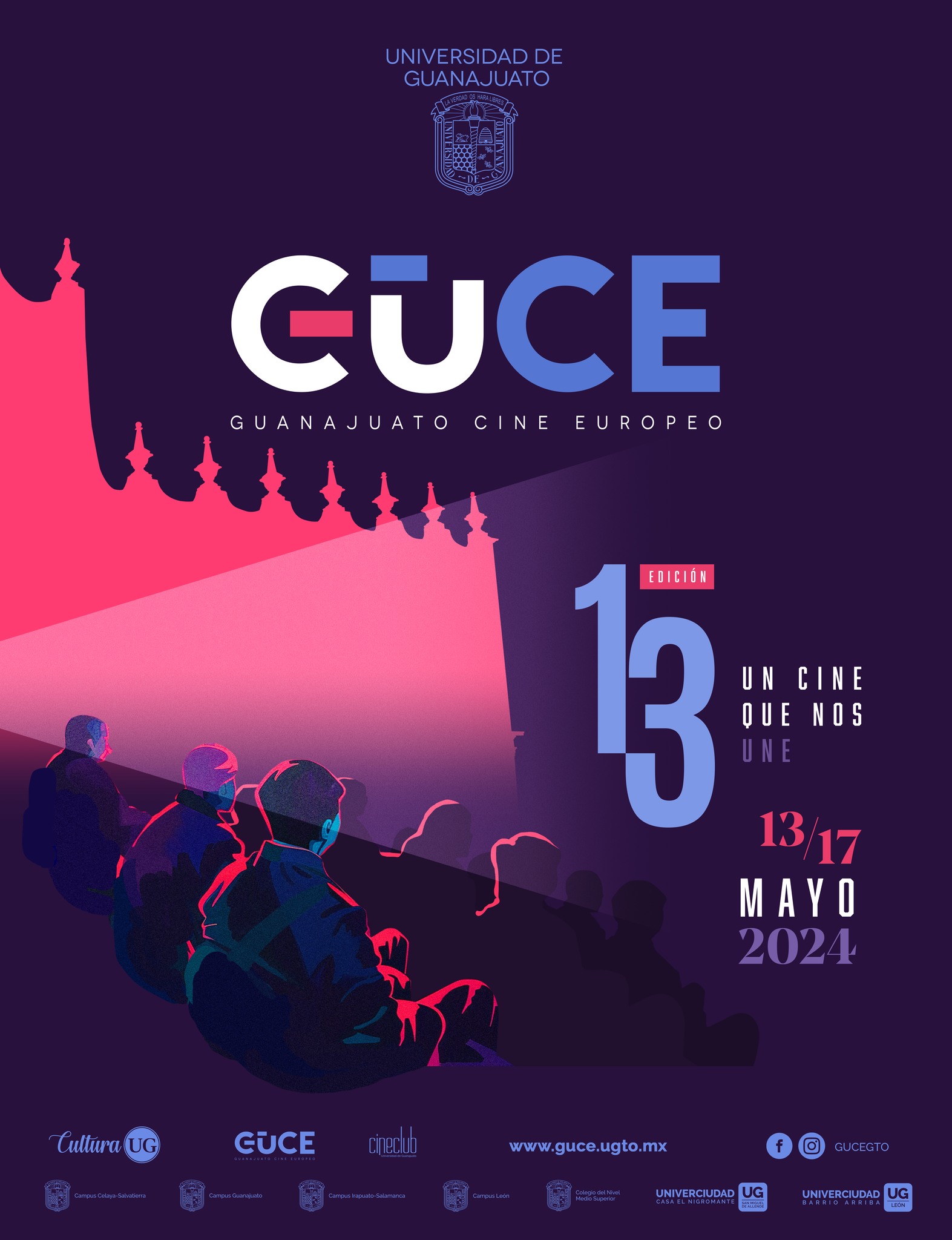 Guanajuato, Gto., a 10 de mayo de 2024.- Como cada año, convencidos de que la cinematografía es un arte con el poder de unir belleza y de trascender barreras, el Cine Club de la Universidad de Guanajuato (UG) ha preparado una edición más de la Muestra de Cine Europeo en Guanajuato (GUCE).