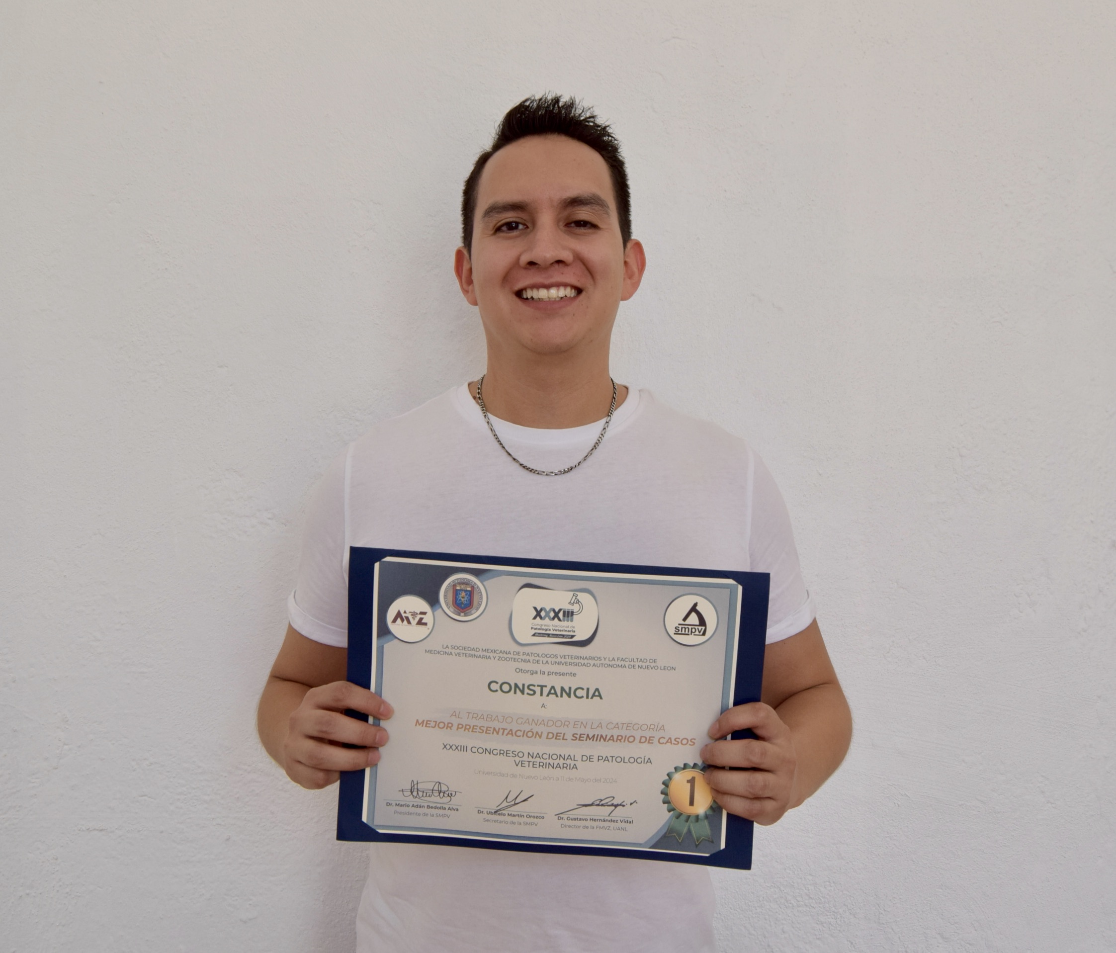 En el congreso se efectuó en Monterrey, Nuevo León, el profesor presentó el estudio “Sífilis por Treponema paraluisleporidarum ecovar Cuniculus (TPeC) en un conejo doméstico (Oryctolagus cuniculus) en México”, que repercutió en el reconocimiento de la Sociedad Mexicana de Patólogos Veterinarios y la Facultad de Medicina Veterinaria y Zootecnia de la Universidad Autónoma de Nuevo León (UANL).