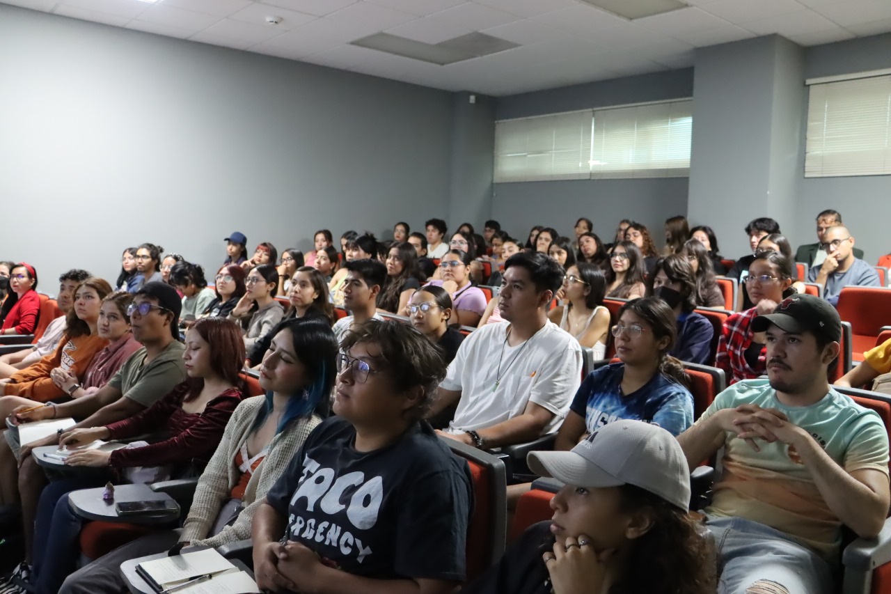 Un tema que propició la exposición dialógica entre estudiantes y expositore(a)s, fue cómo es la transición de alumno(a) a profeso(a), en el cual participaron las psicólogas Mireya Cruz Tapia y Brenda De La Luz Martínez Medina, y los psicólogos Marco Antonio Rojas López y Francisco Jacob Segura Ortega.