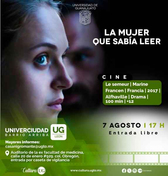 En Univerciudad Barrio Arriba de León, se proyectará la cinta “La mujer que sabía leer” de Marine Francen el 7 de agosto a las 17:00 horas en el Auditorio de la ex Facultad de Medicina. Asimismo, se expone “A ojo de pájaro” en sede Aquiles Serdán.