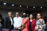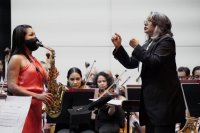 Guanajuato, Gto., a 07 de marzo de 2026.- La Orquesta Sinfónica de la Universidad de Guanajuato (OSUG) presentó el programa “Ríos de esperanza”, un concierto que reconoció la creación musical de mujeres compositoras en distintas épocas, bajo la guía de la directora huésped Grace Echauri y con la participación de la saxofonista María Elena Ríos.
