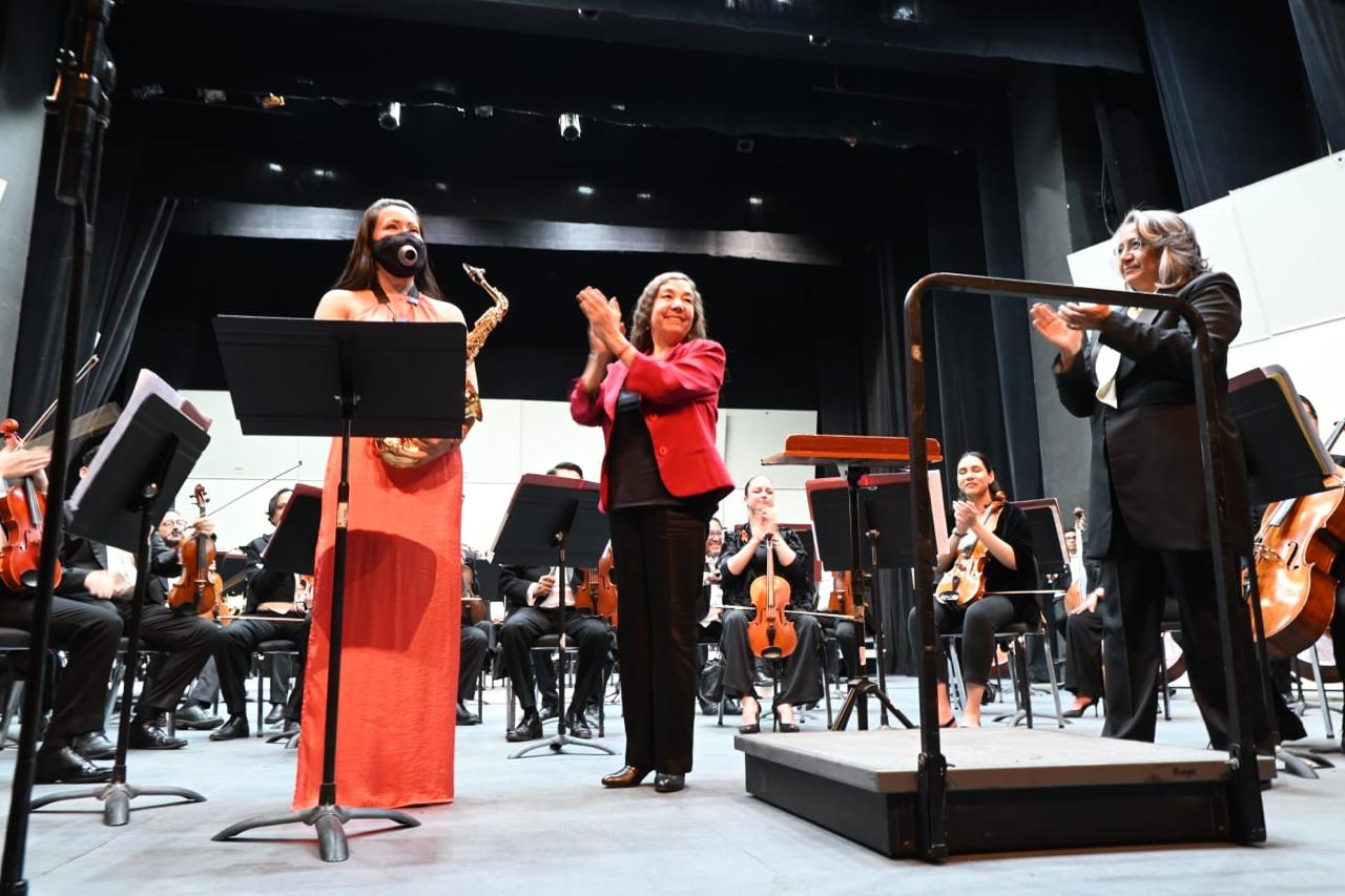 En el marco del Día Internacional de la Mujer (8 de marzo), el encuentro se volvió memorable con el estreno mundial de Ríos de esperanza (2026), concierto para saxofón alto y orquesta, de Leticia Armijo, compositora mexicana reconocida por su sólida trayectoria internacional y su compromiso con la creación contemporánea. La obra está dedicada a la saxofonista María Elena Ríos, sobreviviente de un ataque con ácido y promotora de la Ley Malena para tipificar este acto violento como tentativa de feminicidio.