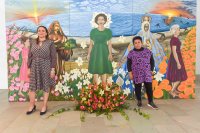 A su vez, se reunió el trabajo de dos profesoras del Campus León: la Dra. Carlota Laura Meneses Sánchez, adscrita a la División de Ciencias Sociales y Humanidades, y la Dra. Nana Geraldine Cabo Bizet, de la División de Ciencias e Ingenierías, quienes participaron en la realización de un mural que representa las tres etapas de la vida de una mujer, desde la historia personal de la madre de la Dra. Cabo Bizet.