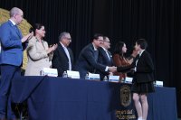 En ese contexto, estudiar alguna de las disciplinas de Derecho, Política y Gobierno, implica una doble posición ética, significa asumir que la ley, las instituciones y las políticas públicas pueden y deben ser el camino y las herramientas para transformar la realidad. “La excelencia que hoy celebramos no debe entenderse como acto, la verdadera es la que se traduce en la capacidad de pensar críticamente, valentía para actuar de forma congruente y compromiso de defender la dignidad humana”, concluyó.