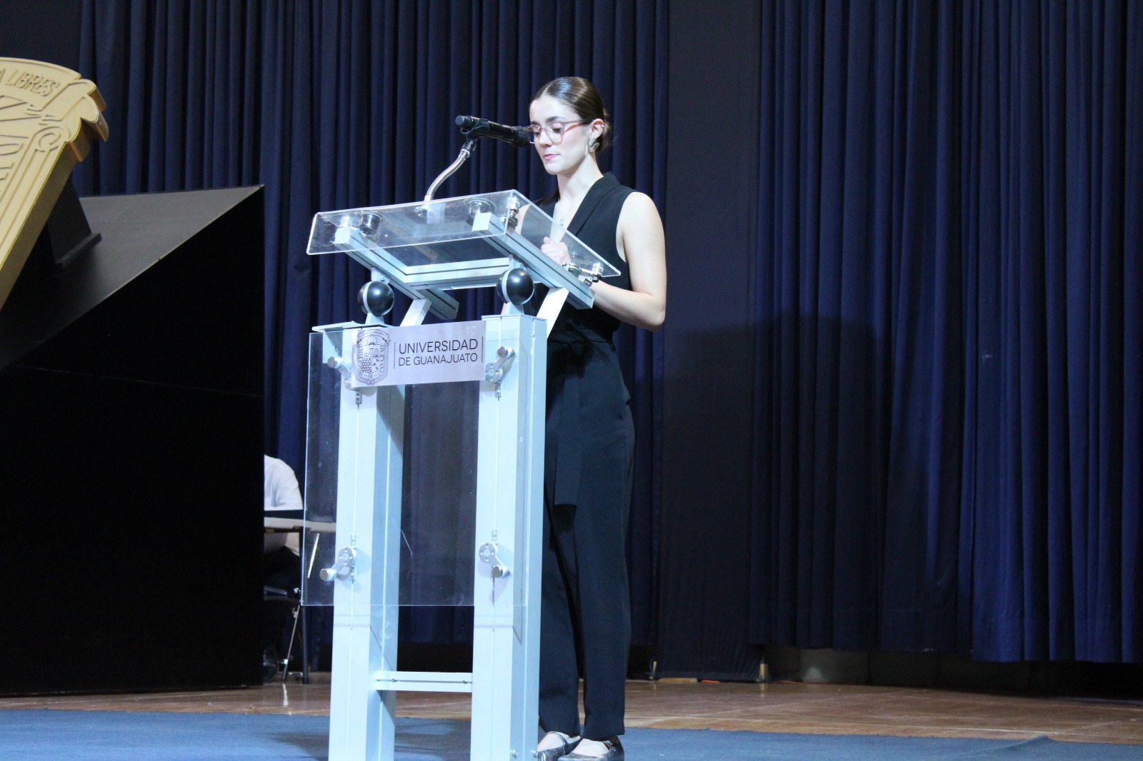 En su oportunidad, el Mtro. Francisco Javier Pérez Arredondo, Director de Administración Escolar, en representación de la Dra. Claudia Susana Gómez López, Rectora General de la Universidad de Guanajuato, felicitó a las y los estudiantes galardonados y les conminó a seguir en el camino de la excelencia.