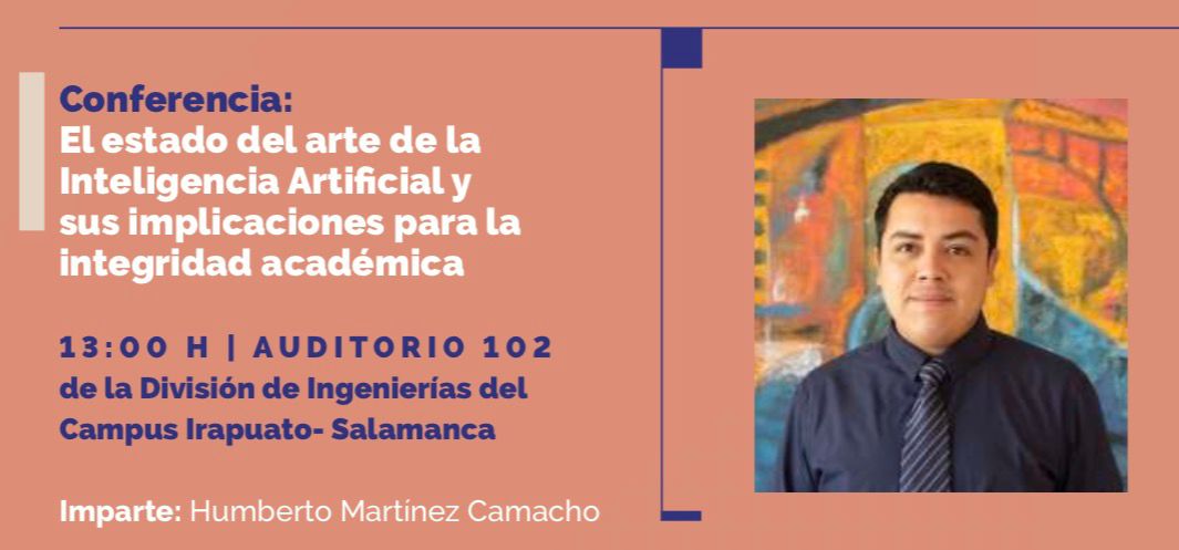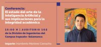 Igualmente, el Campus Irapuato-Salamanca recibirá esta charla el 25 de marzo a las 13:00 horas en la Sede El Copal; mientras que, en la Sede Salamanca, a la misma hora se discutirá “El estado del arte de la Inteligencia Artificial y sus implicaciones para la integridad académica”, con Humberto Martínez Camacho.