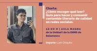 De manera similar, en la ENMS Salamanca tendrá lugar la charla “¿Cómo escoger qué leer? Guía para hacer y consumir contenido literario en redes sociales”, a cargo de Lael Chiquito. La fecha es el 23 de marzo a las 12:00 horas.