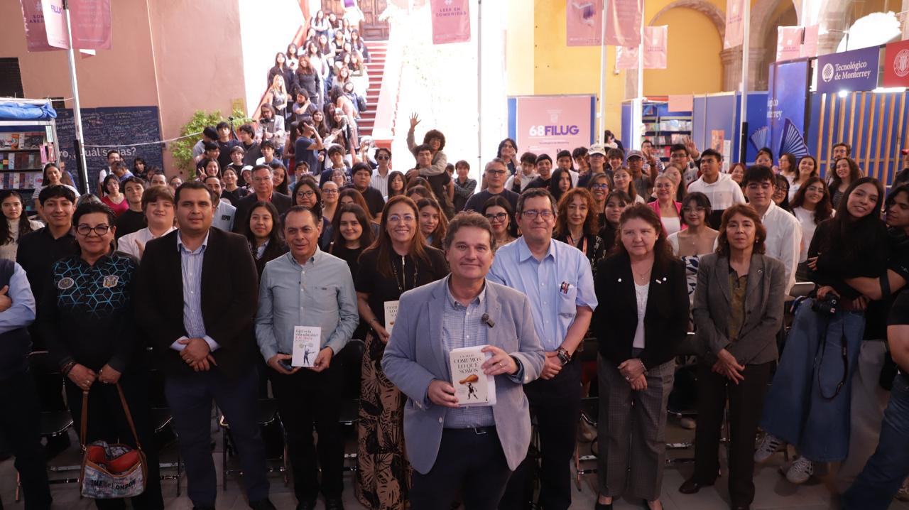 Al finalizar la charla, se realizó el reconocimiento al estudiantado de la Escuela de Nivel Medio Superior Centro Histórico León por ganar el premio del reto de lectura “Leyendo ciencia en el Colegio: rumbo a la FILUG 68”, donde se invitó a jóvenes de esta y otras escuelas a sumergirse en el libro de José Miguel Mulet, ¿Qué es la vida saludable? Mitos y verdades sobre la salud para vivir más y mejor.